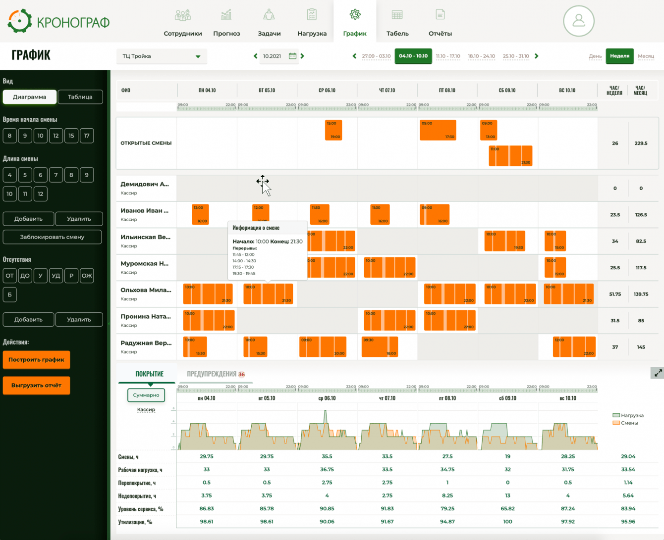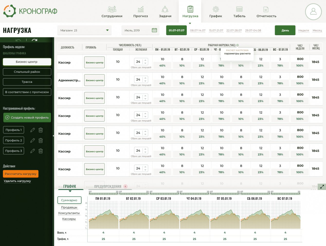 Необходимо было разработать систему автоматизированного построения графиков персонала, использующую алгоритмы учета потребности бизнеса в сотрудниках.