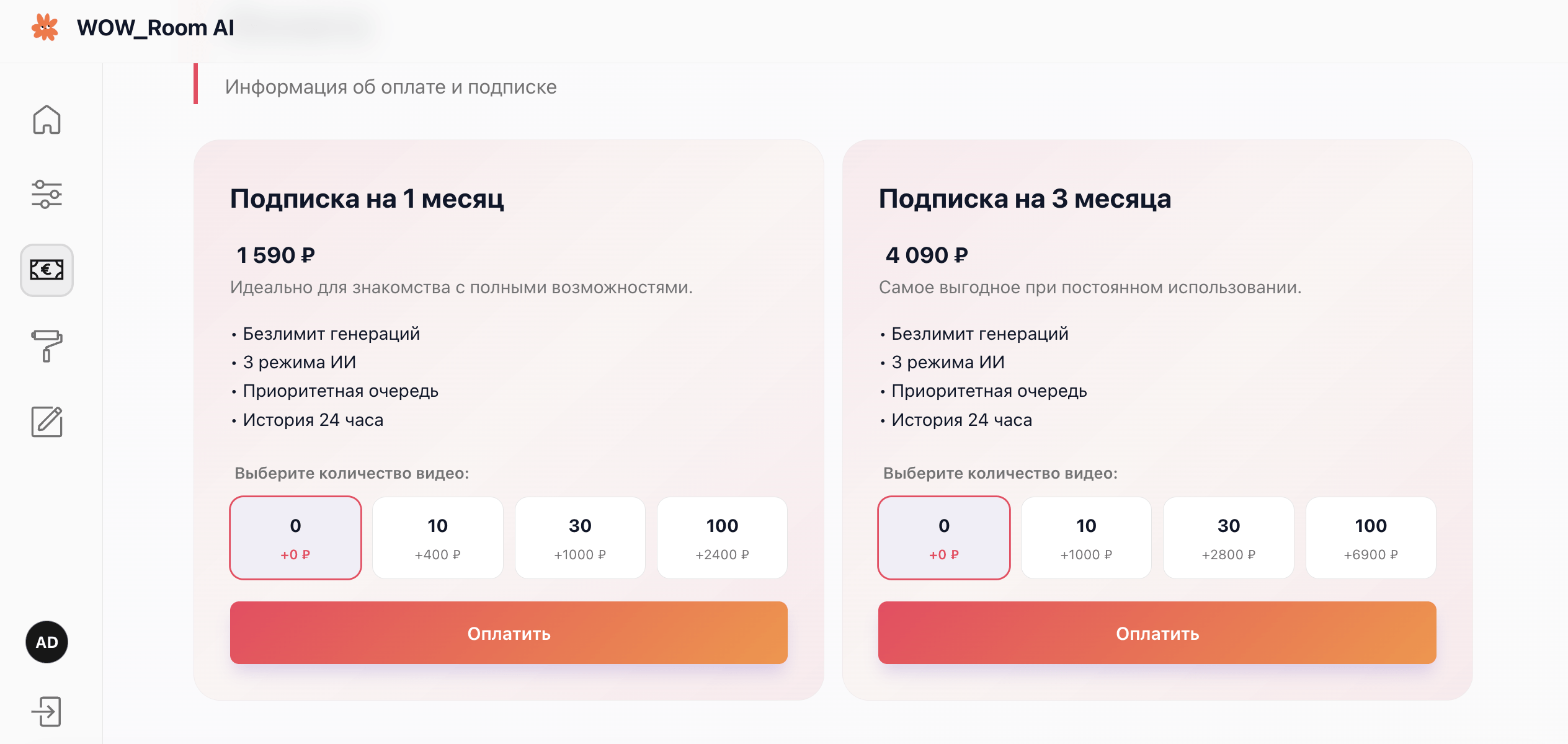 Система истории и лимитов: Разработка личного кабинета с хранением истории генераций (24 часа) и интеграция эквайринга для работы по подписной модели (SaaS).