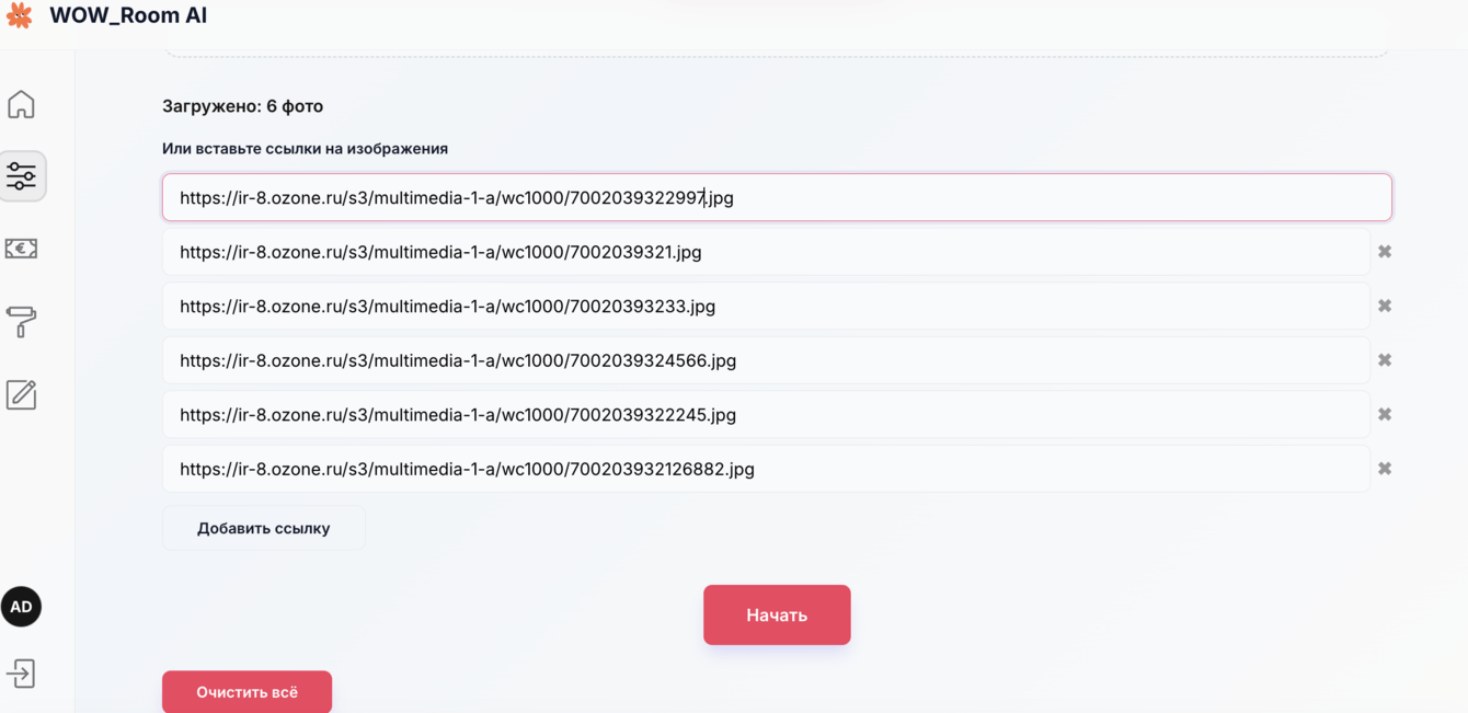 - Реализовали «киллер-фичу»: вставка 10+ ссылок (Ozon, WB) → ИИ сам вырезает фон.