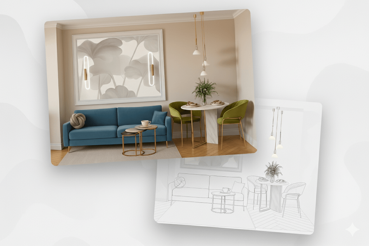 - Скорость концепта: Сокращение времени подготовки визуализации с 4–6 часов до 5–10 минут.
