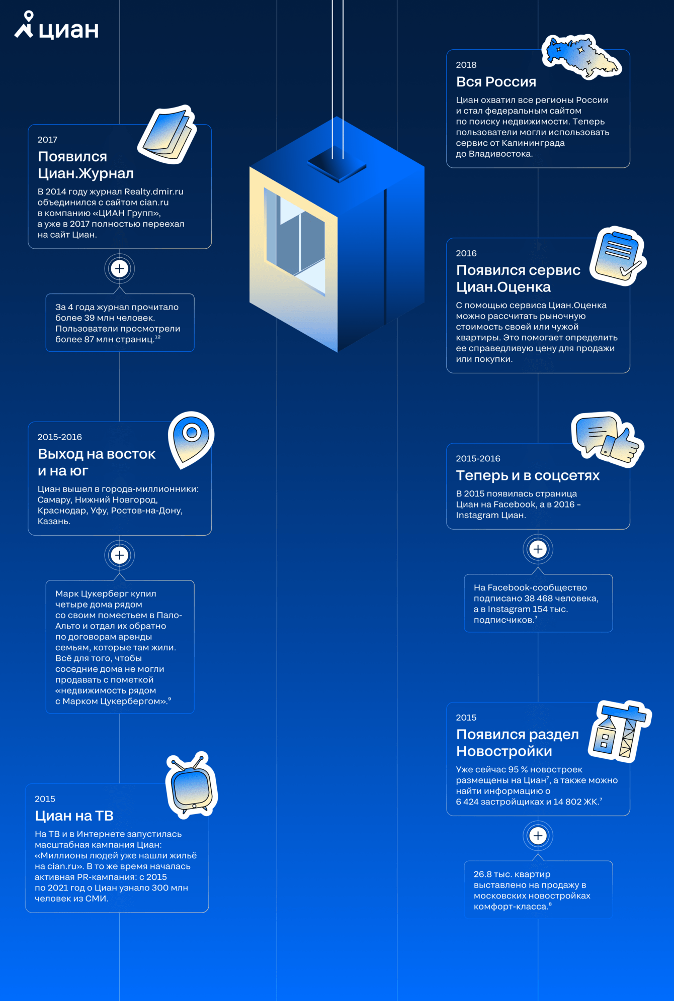 Рассказать о вехах, истории развития Циан. Разработать механику вовлекающей активности для пользователей, которая подойдет для разных групп аудиторий с возможностью share в социальных сетях.