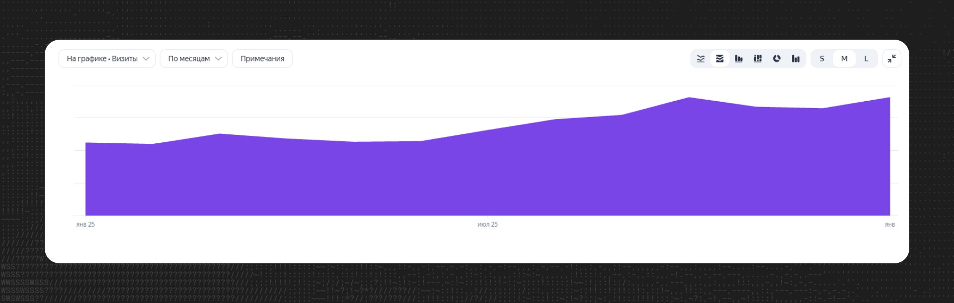 Главной задачей проекта было обеспечить устойчивый рост поискового трафика и видимости по коммерческим запросам на масштабе каталога в миллионы страниц. За год работы системные изменения в структуре сайта, индексации и работе со спросом дали свои результаты: