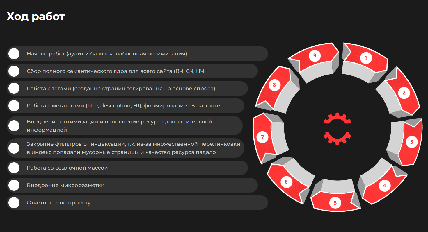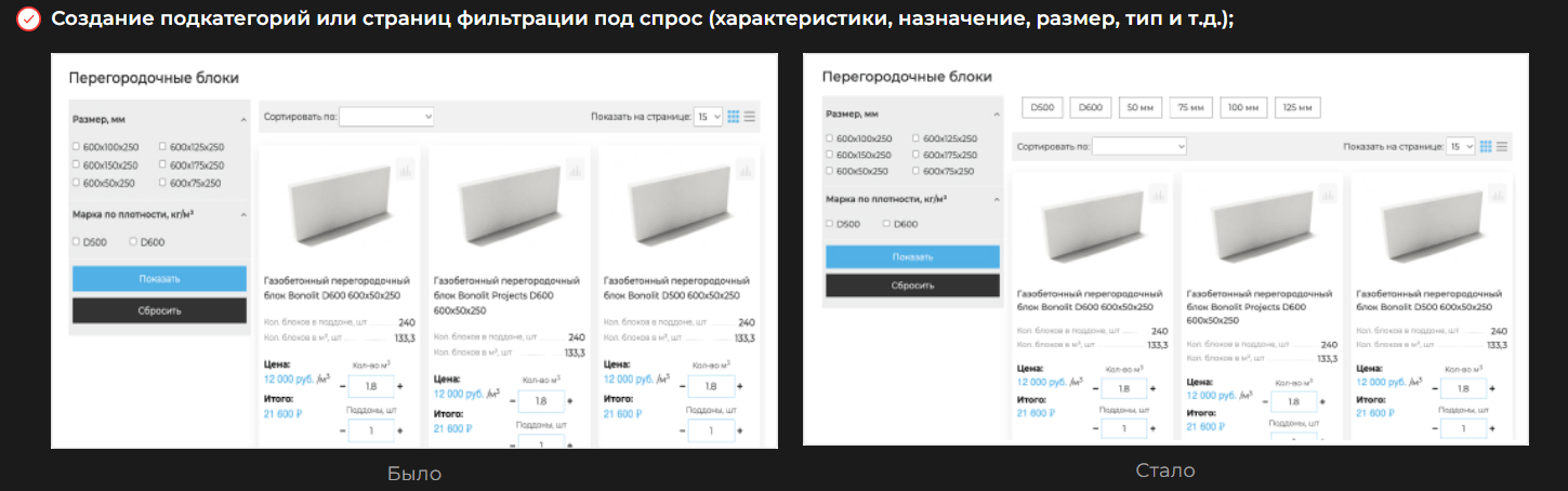 Основную роль сыграли работы по контентному наполнению товаров и формированию посадочных страниц через вложенность.
