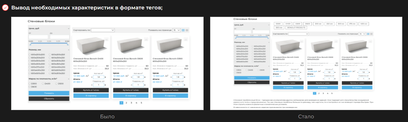 Оптимизации карточек товаров в листинге согласно тому как люди обычно ищут товары;