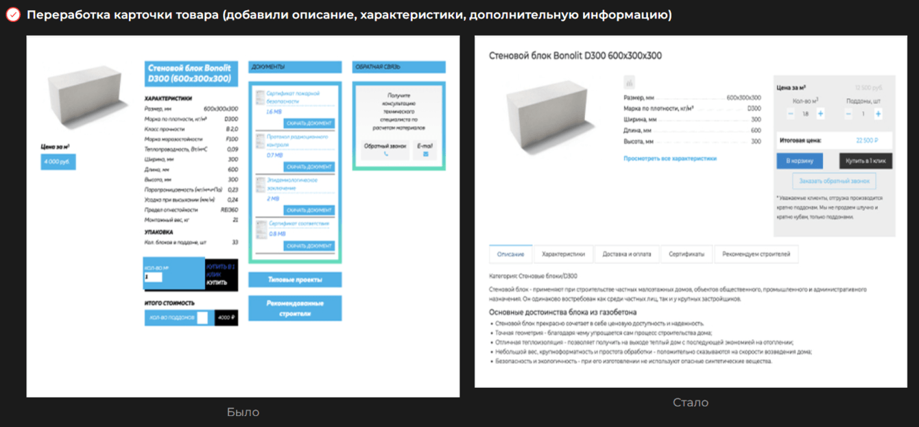 Визуальная и техническая переработка карточек товара, а также страниц: