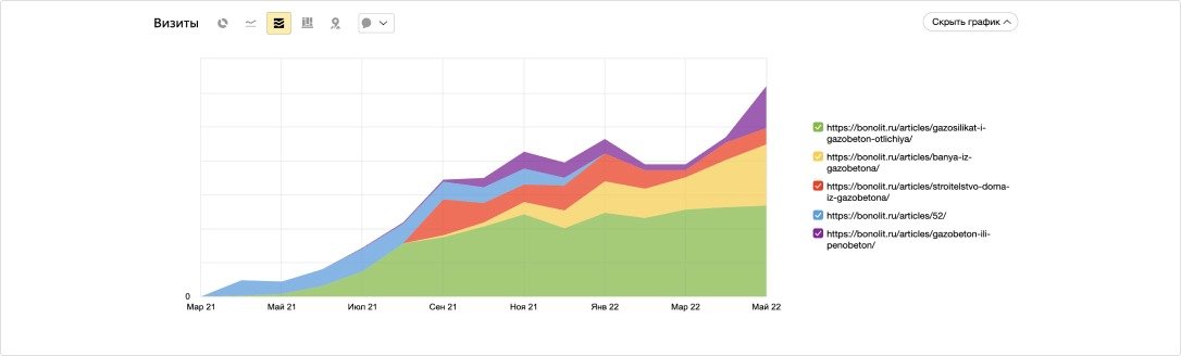 Динамика роста визитов страниц со статьями