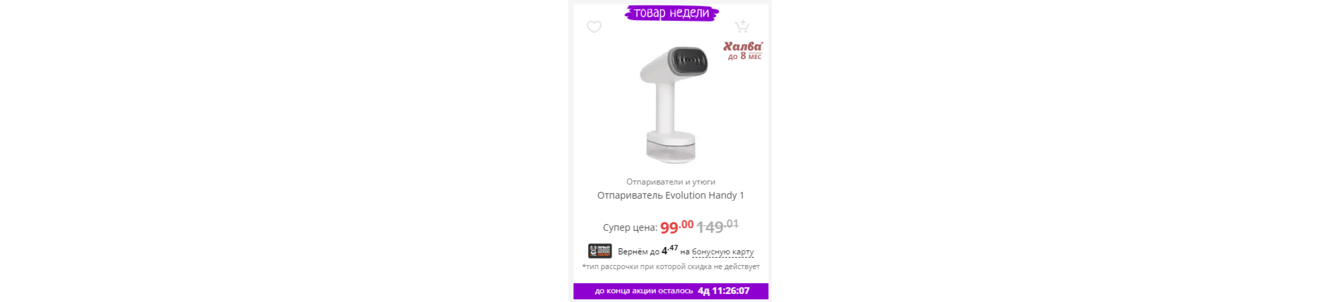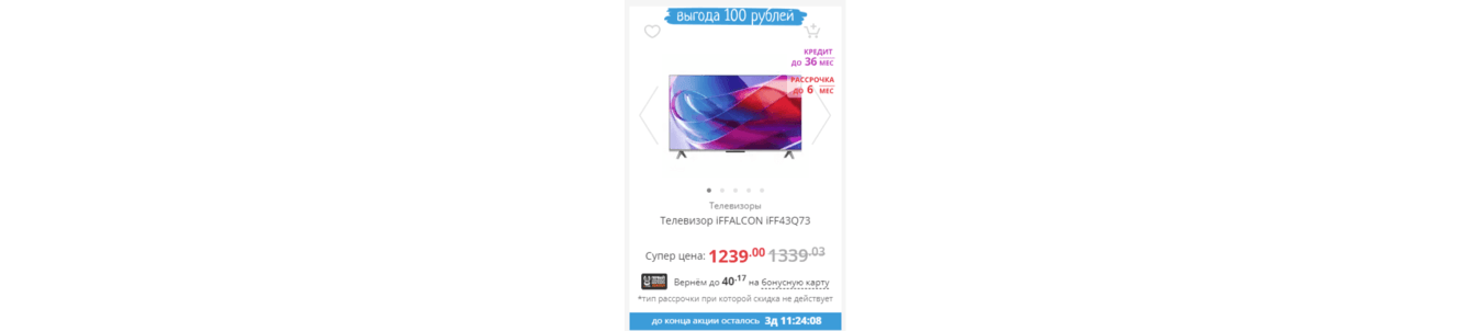 Результат: Люди охотнее берут товары со скидкой, а особенно — с таймерами. Общая статистика по товарам на акции такова: продажи увеличились на 20%.