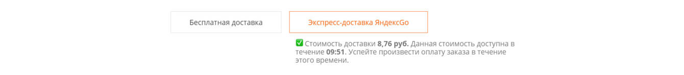 После подбора магазина/склада, если существует подходящий по всем параметрам, производится предварительная бронь в яндексе и клиенту дается время на оплату заказа онлайн. Если клиент успел оплатить, то заказ в яндексе переходит из статуса брони в статус оформленного. На это время цена доставки для новых заказов этого клиента неизменна.