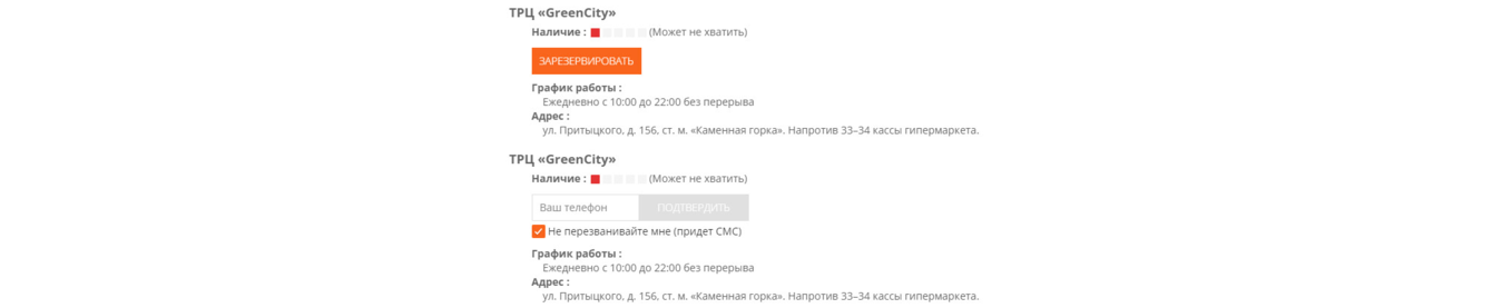 Задача: Реализовать автоматическое отображение остатков конкретного товаров в каждом магазине, добавить возможность зарезервировать товар для самовывоза.