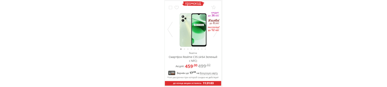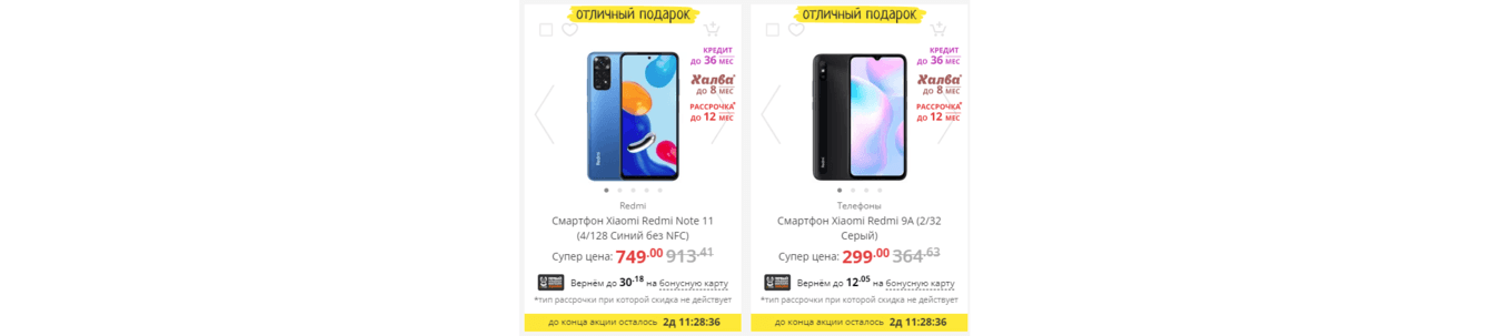 У клиента есть еще один сайт, где можно приобрести БУ телефоны. Настроен алгоритм, по результатам выполнения которого в карточке отображается ссылка на сайт, где можно купить старые модели либо ссылка на актуальные в настоящий момент модели. Так, в карточках смартфонов Xiaomi отображается ссылка на сайт с товарами БУ, где пользователь может купить старую модель, если она есть в ассортименте.
