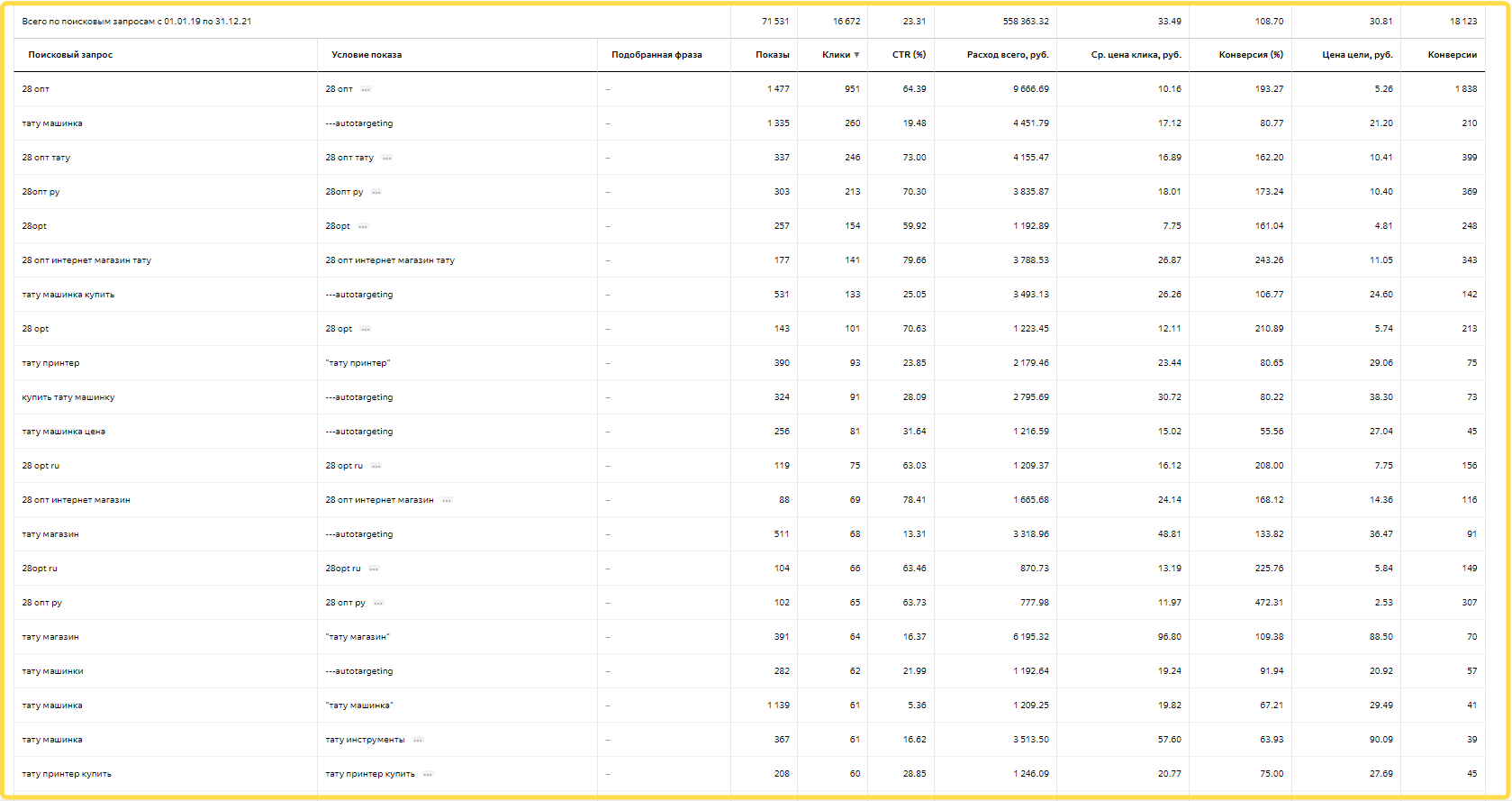 Средняя цена клика 16,39 руб.