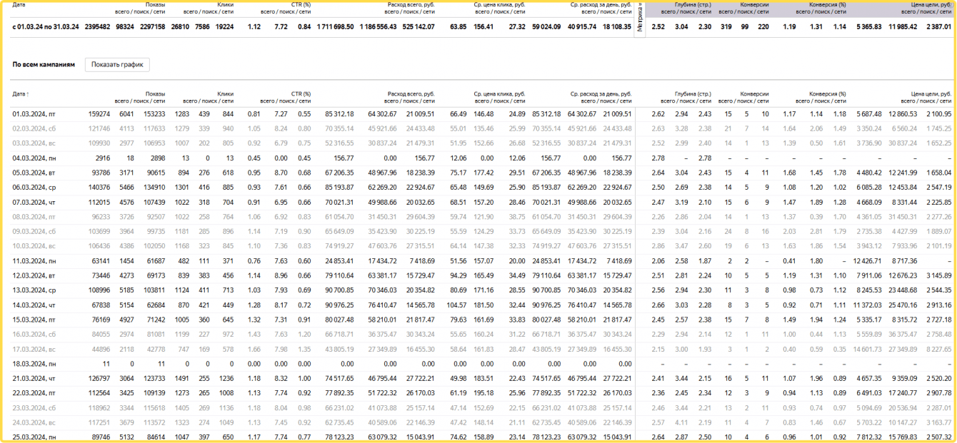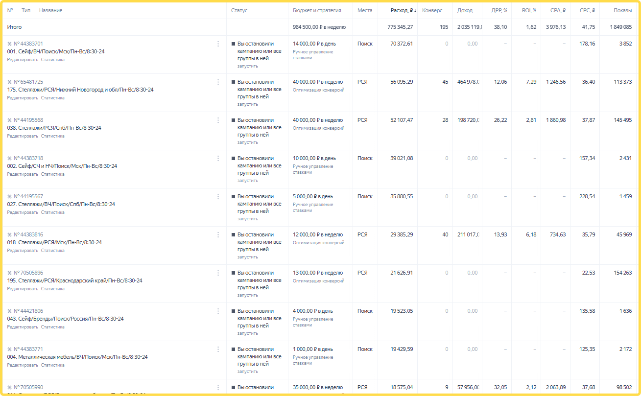 За несколько лет работы рекламной кампании шел ввиду высокой окупаемости, бюджет вырос с 50т.р. до 2 млн. руб./мес
