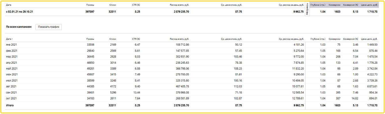 Средняя цена клика 16,39 руб.