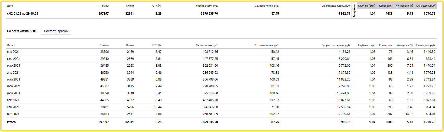 Средняя цена клика 16,39 руб.
