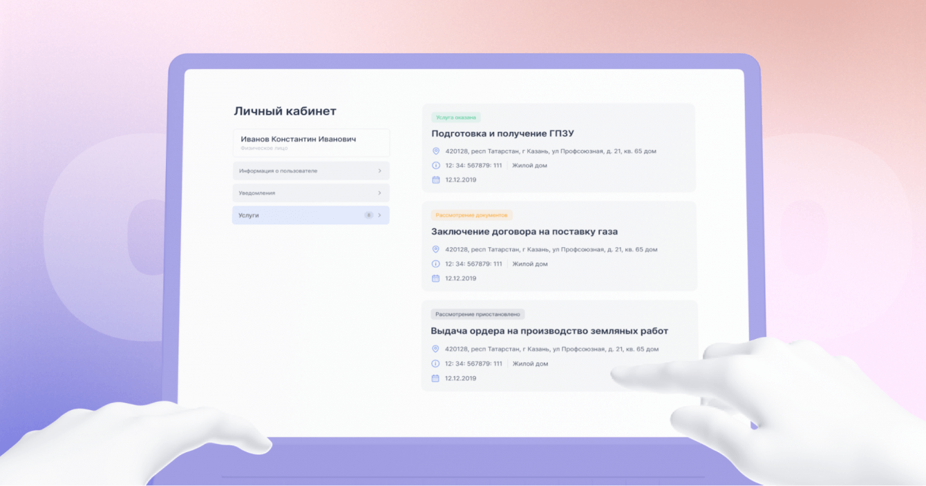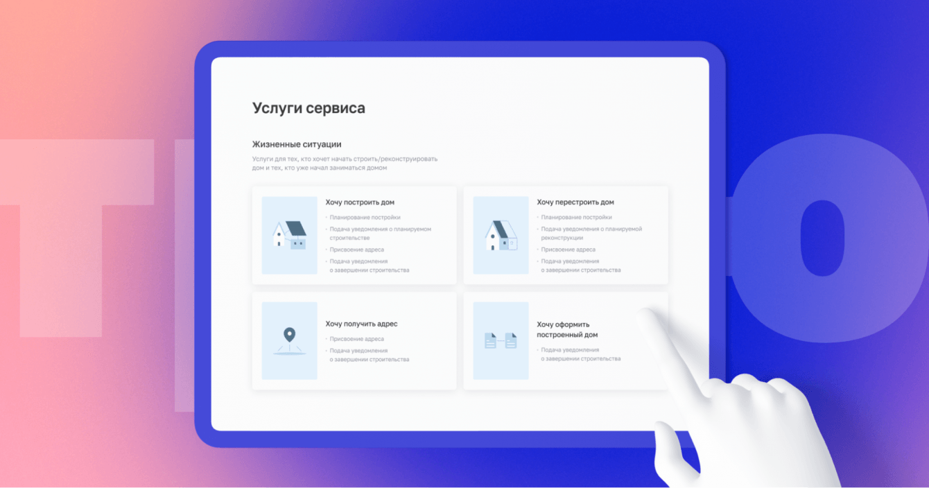 Над оформлением платформы мы трудились особенно кропотливо, так как процесс подачи заявлений по услугам в сфере строительства является непростым и застройщику нужно доступным языком объяснить какие данные ему нужно предоставить.