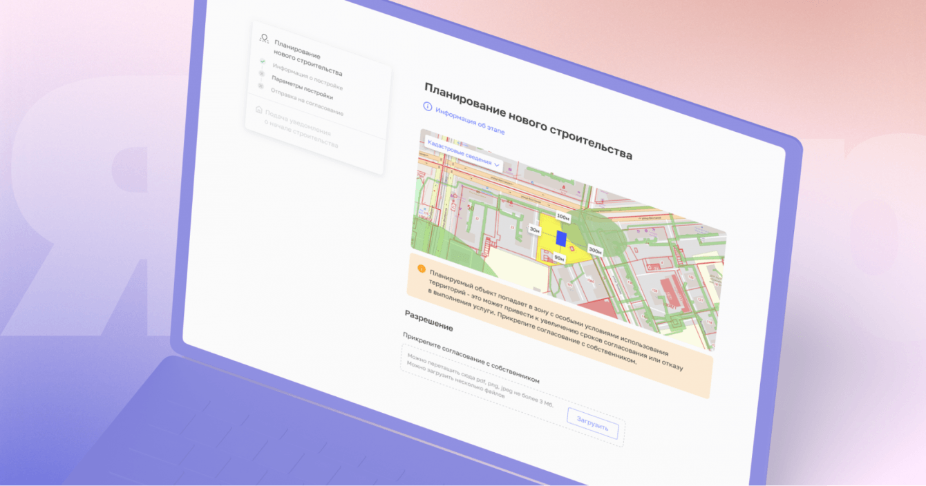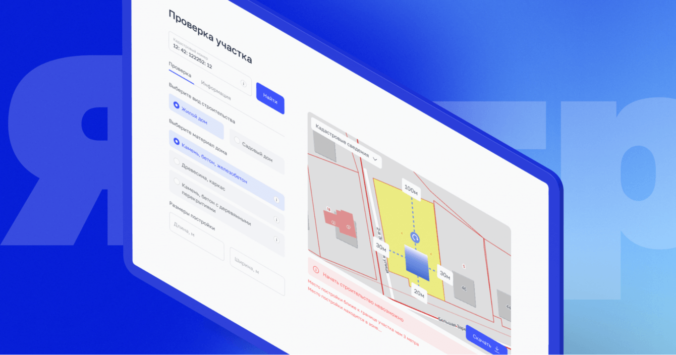 Также реализована интеграция с публичной кадастровой картой, при анализе которой Платформа «Я строю» выдает пользователю допустимое «пятно застройки» со всеми нюансами: рассчитывает расстояние от других домов, уведомляет о зонах с особыми условиями использования территорий и необходимости соблюдения отступов от границ земельного участка. Благодаря этому, пользователь еще на этапе подачи заявления будет проинформирован о всех строительных нормах, которые необходимо соблюсти, что приводит к снижению отказов при рассмотрении заявления в уполномоченном органе.