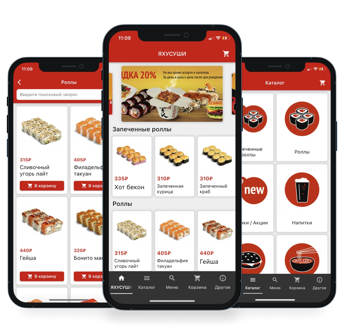 Интернет-магазин по доставке суши, роллов, пиццы: разработка мобильного приложения ЯХУСУШИ (iOS/Android), в котором пользователи могут: