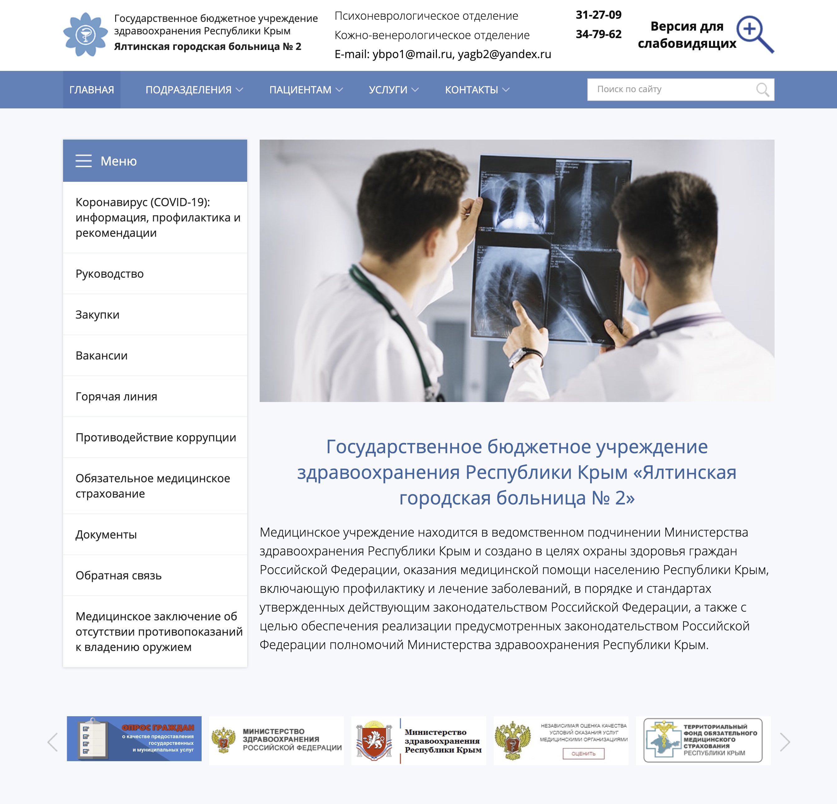 К нам обратилась Ялтинская городская больница № 2 за созданием нового сайта в короткие сроки и небольшим бюджетом + отвечающим требованиям Минздрава России.
