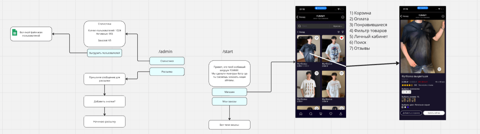 Наш клиент — владелец небольшого магазина одежды, который изначально обратился к нам с запросом на создание стандартного Telegram-бота для демонстрации каталога товаров. Он хотел простое приложение для взаимодействия с клиентами и оформления заказов
