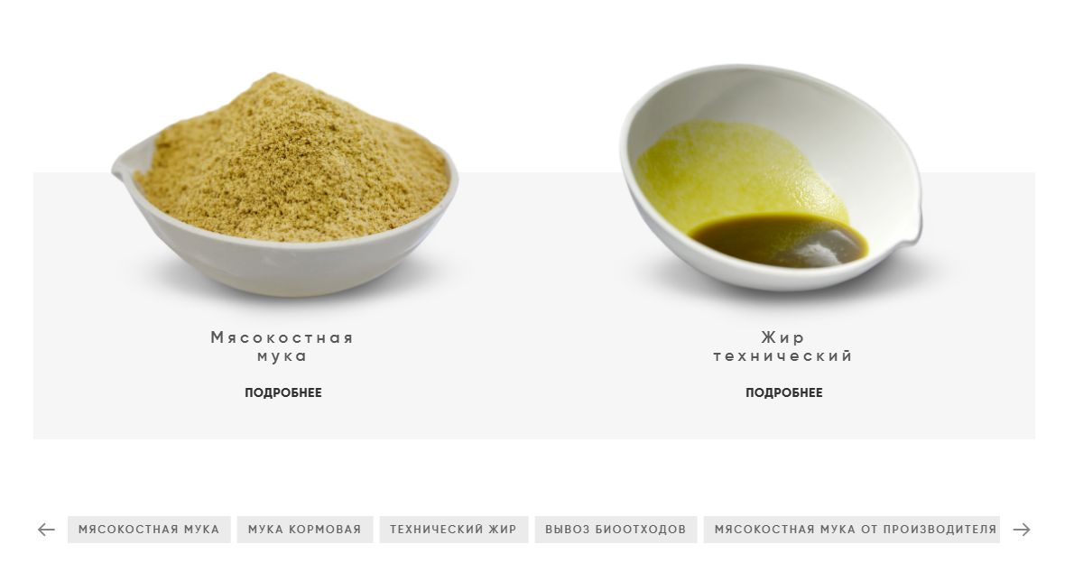 Компания занимается оптовыми поставками мясокостной муки и переработкой отходов животноводства на Северо-Западе России. Это первый и единственный завод такого типа в регионе, с современным оборудованием и производственными процессами, полностью соответствующими строгим санитарным требованиям.