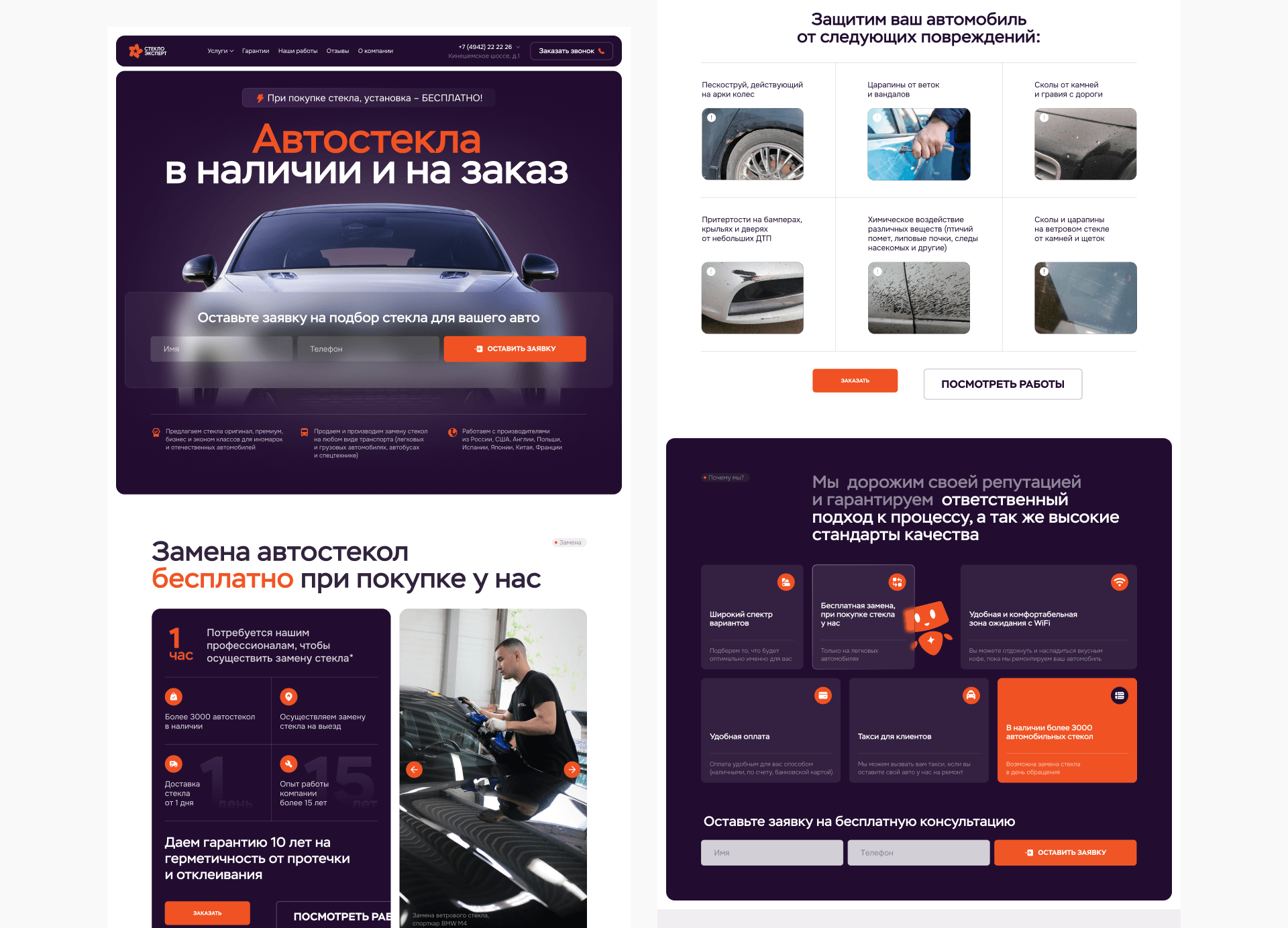Заказчик занимается несколькими направлениями автомобильной индустрии в регионе. Когда компания заметила активный рост стекольного направления, было принято стратегическое решение — выделить этот бизнес в отдельный бренд. Так появился «Стеклоэксперт» — крупнейший центр автостекла в Костроме.