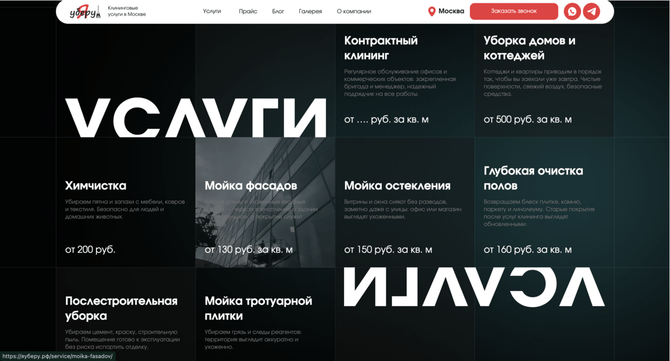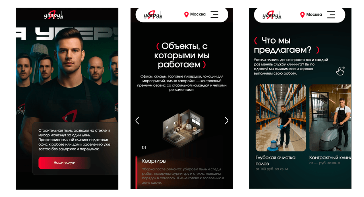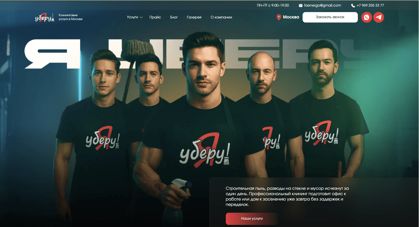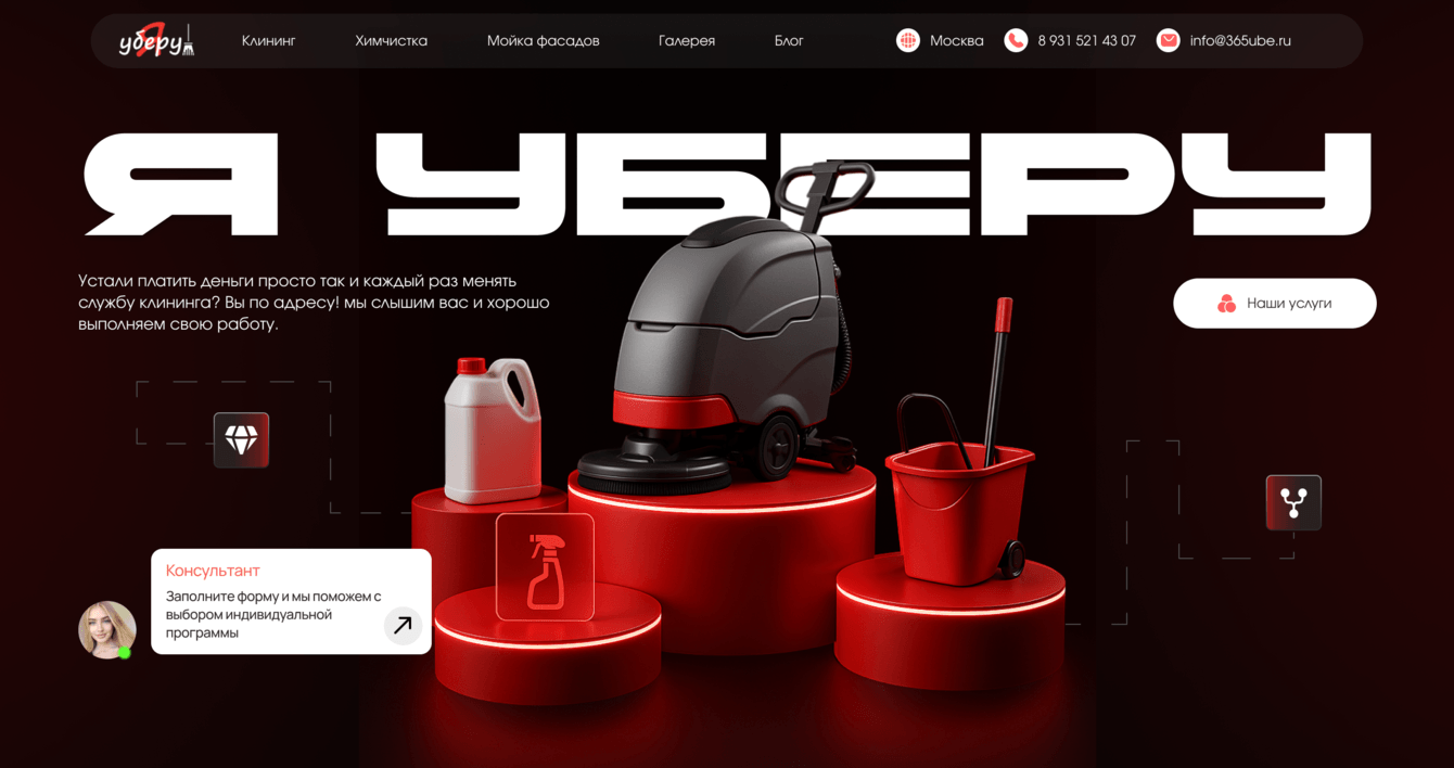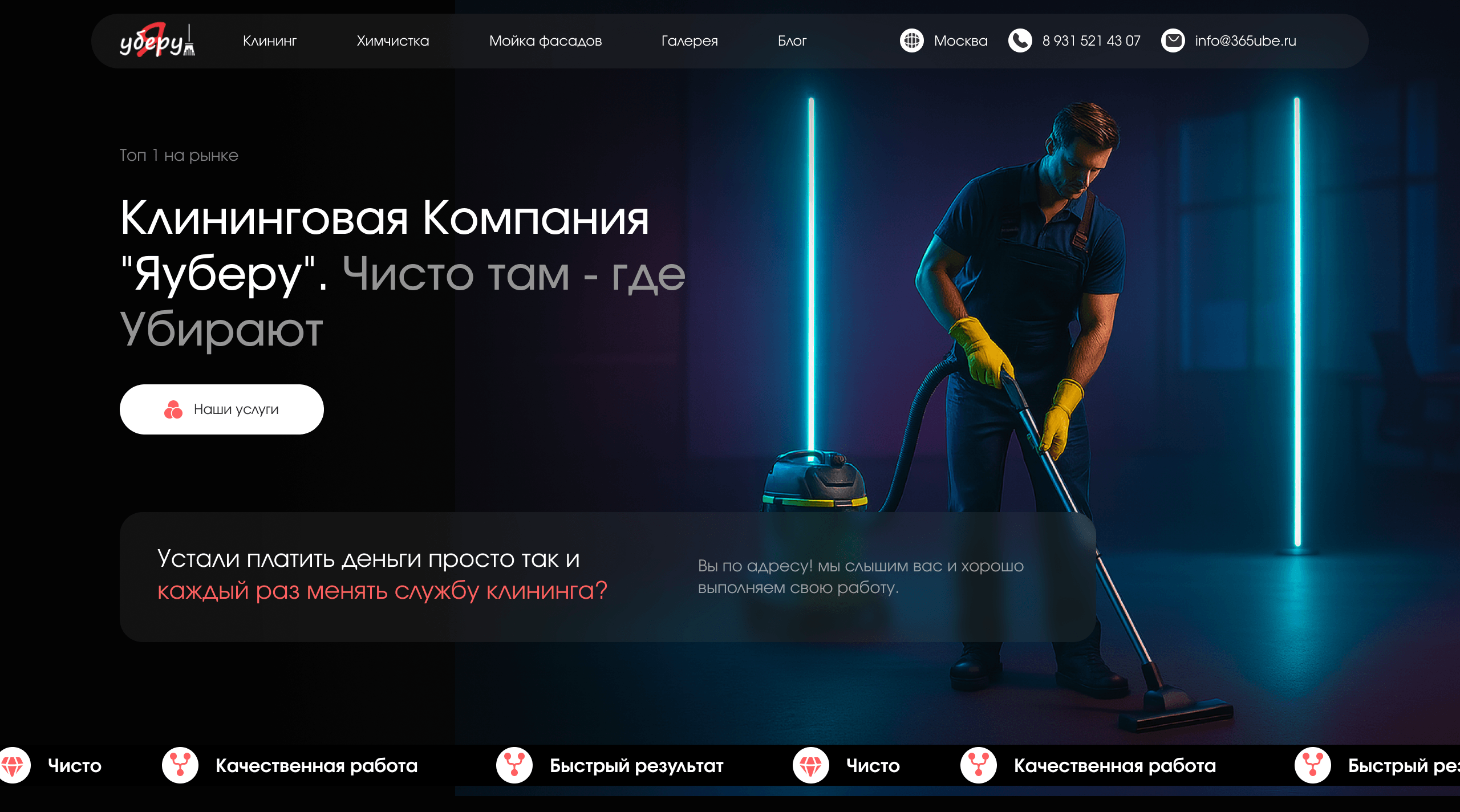 В результате был создан новый премиальный сайт, который полностью соответствует уровню услуг компании «Я УБЕРУ» и решает ключевые бизнес-задачи клиента.