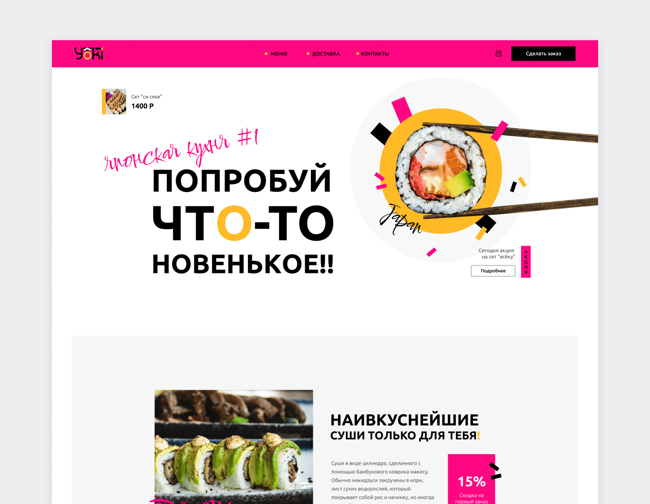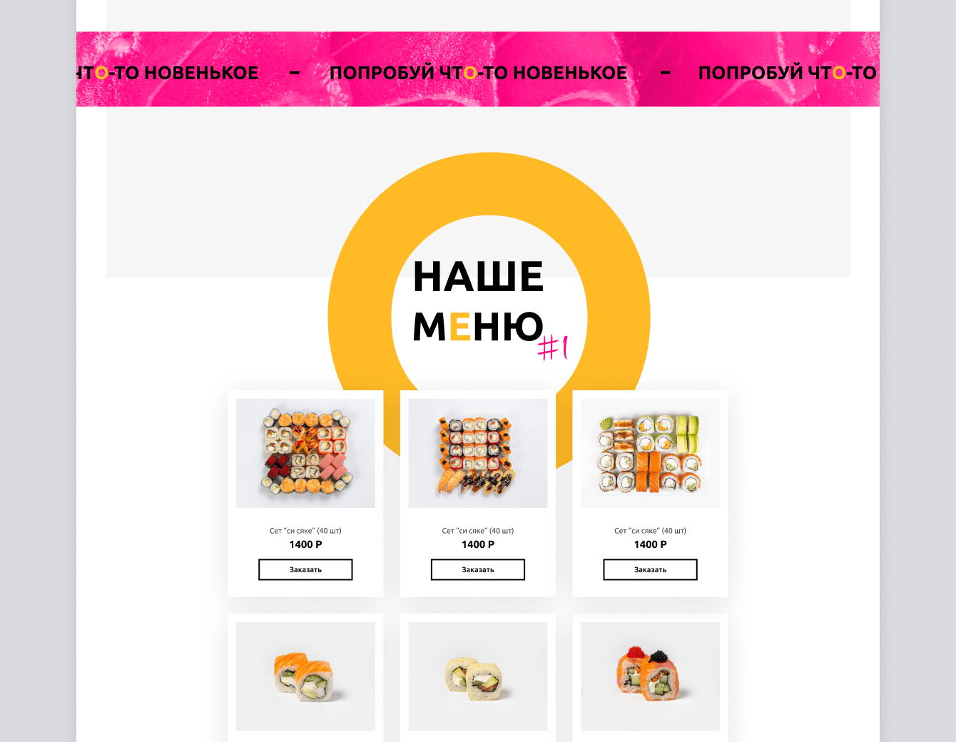 В результате мы получили яркий, запоминающийся логотип и современный, функциональный интернет-магазин для онлайн-заказа суши в ярком, необычном стиле, соответствующий всем ожиданиям клиента.