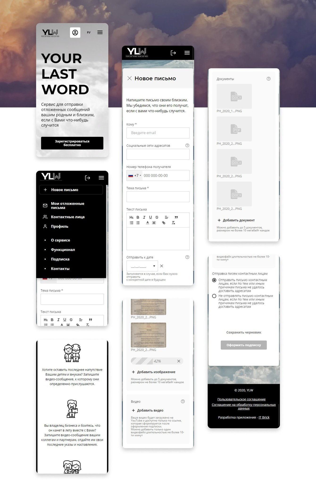 Клиент обратился к нам в разгар пандемии, хотя эта идея давно зрела у него в голове. Его вдохновили зарубежные фильмы и сериалы, где персонажи часто пишут письма или записывают видеообращения, которые обнаруживаются после смерти героя. Клиент принял решение — эта романтическая задумка должна найти свое воплощение. Ведь такой сервис может помочь многим людям: кому-то быть услышанным, кому-то стать частью важных событий до которых он боится не дожить, кому-то простить и быть прощенным.