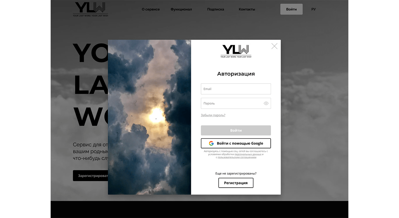К этому моменту мы подошли особенно вдумчиво и результат порадовал как команду, так и Заказчика. Проанализировали сервисы со схожими направлениями, но не нашли достойного примера. В некоторых случаях слишком траурный дизайн или прослеживается связь с религией. В итоге было подготовлено два варианта для рассмотрения — с облаками и с горой на фоне. Для себя мы назвали их «ад» и «рай»
