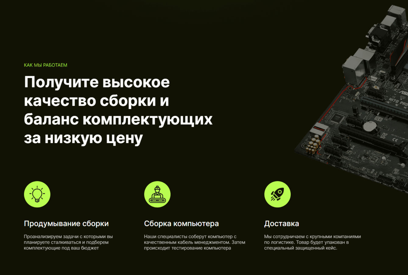 Очень доволен новым сайтом для моей мастерской по сборке компьютеров. Отличный дизайн, удобный интерфейс и супер полезный конфигуратор для подбора комплектующих. Сайт работает быстро и без сбоев. Спасибо за отличную работу!