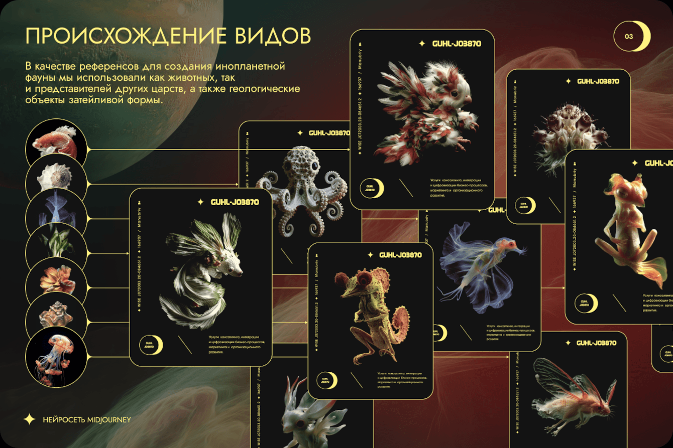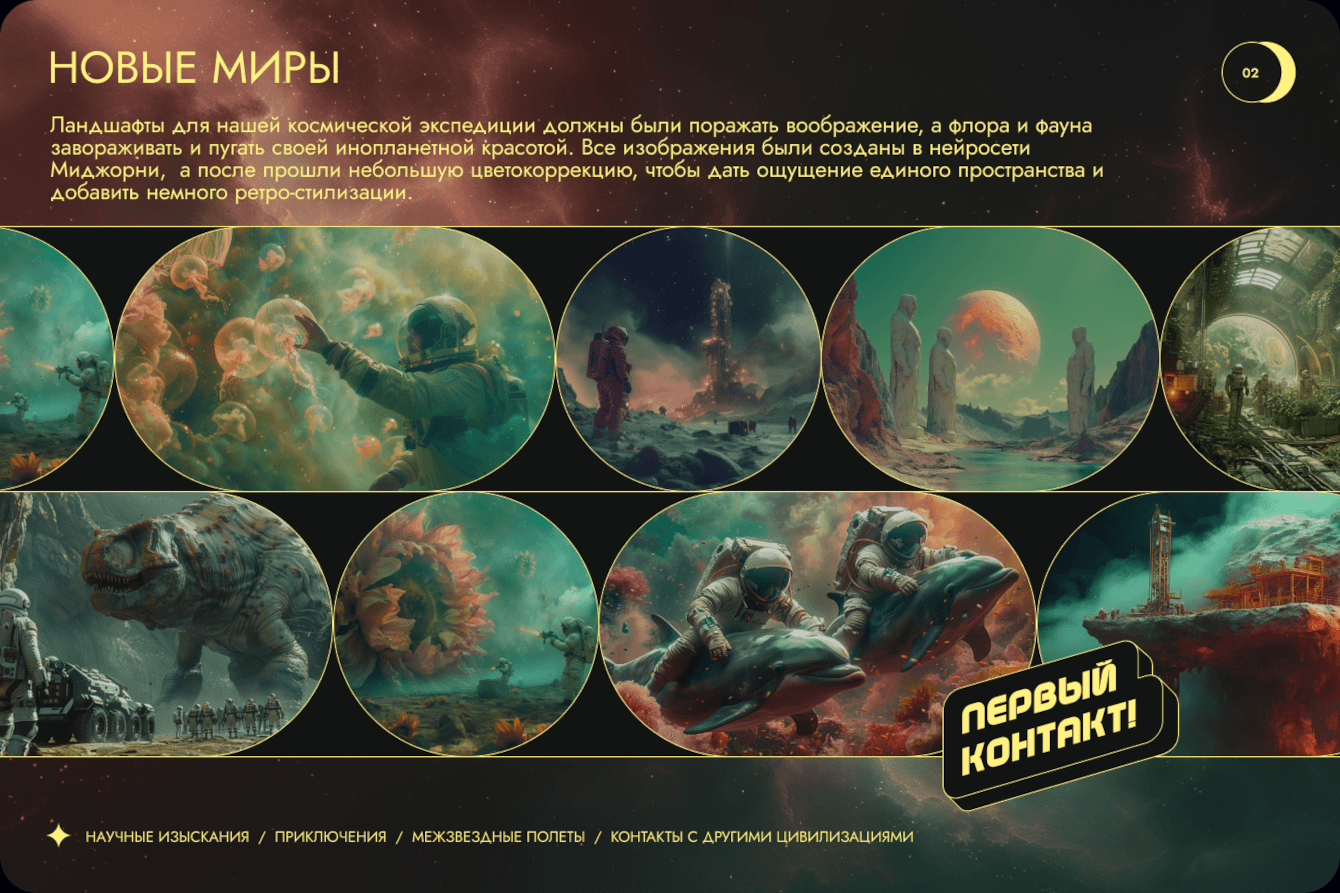 • Сначала создали в Миджорни футуристичные композиции-метафоры, отвечающие нашей визуальной идее.