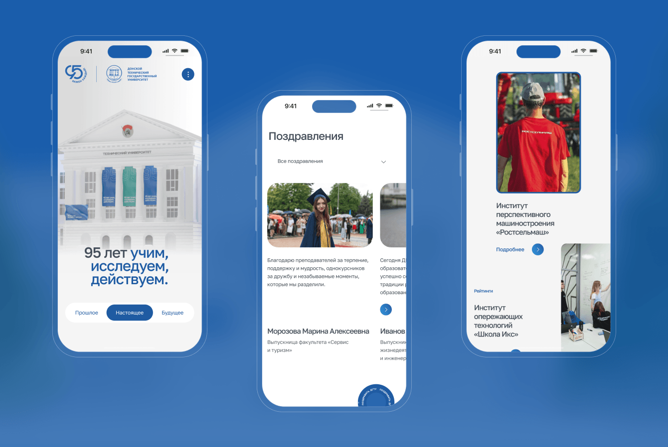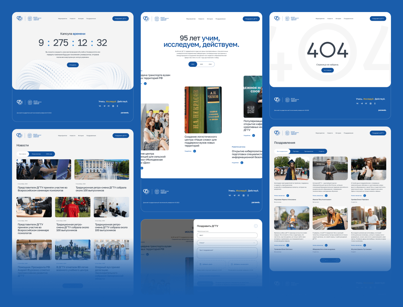 Мы разработали сайт к 95-летию ДГТУ, который вовлекает пользователей в путешествие во времени — от первых шагов ДГТУ до передовых технологий будущего. Нами был создан цифровой архив истории университета, который объединяет прошлое, настоящее и будущее университета, создавая уникальный пользовательский опыт. Также проект повышает вовлеченность аудитории в юбилейные мероприятия ДГТУ и укрепляет его имидж как ведущего технического университета Юга России.