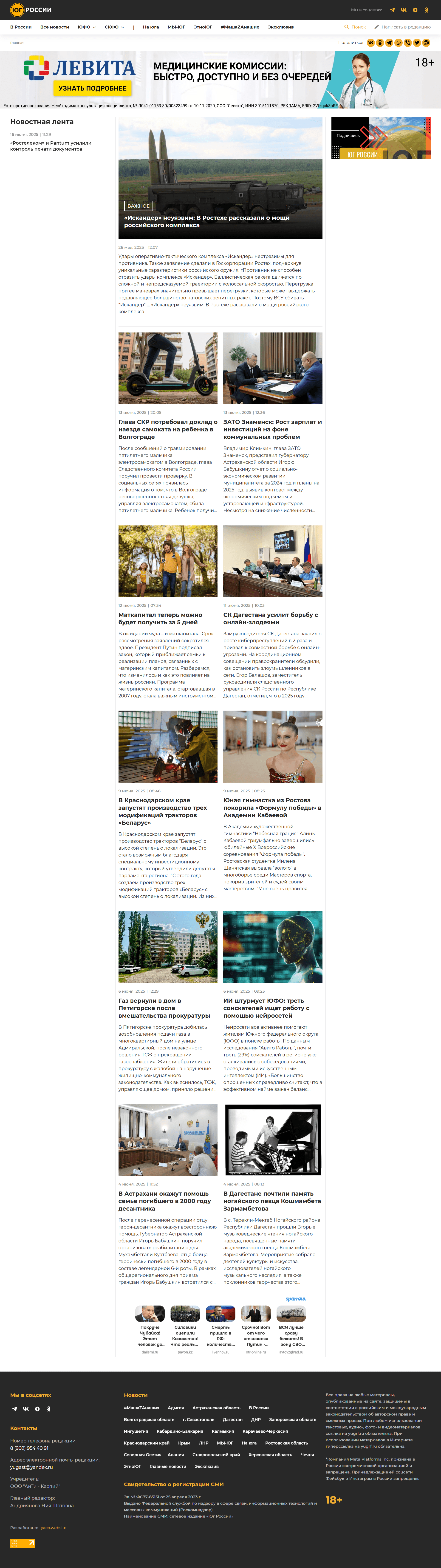 Разработана основная (главная страница), внутренняя страница новости, страница поиска и 404
