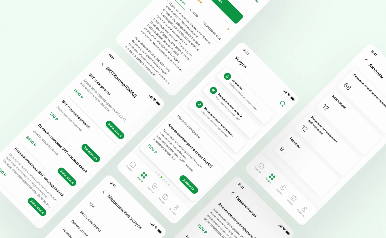 Компания обратилась к нам, чтобы создать собственное мобильное приложение: оно должно облегчить пациентам процесс записи и получения результатов и снять часть нагрузки с сотрудников.
