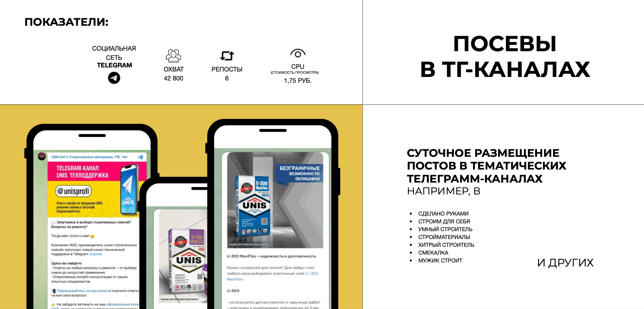 - Охват по посевам Телеграм 42 000, CPU = 1,75 руб.