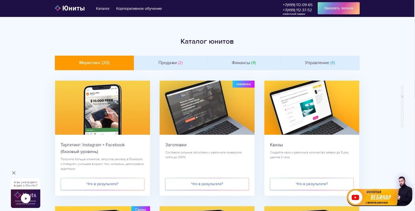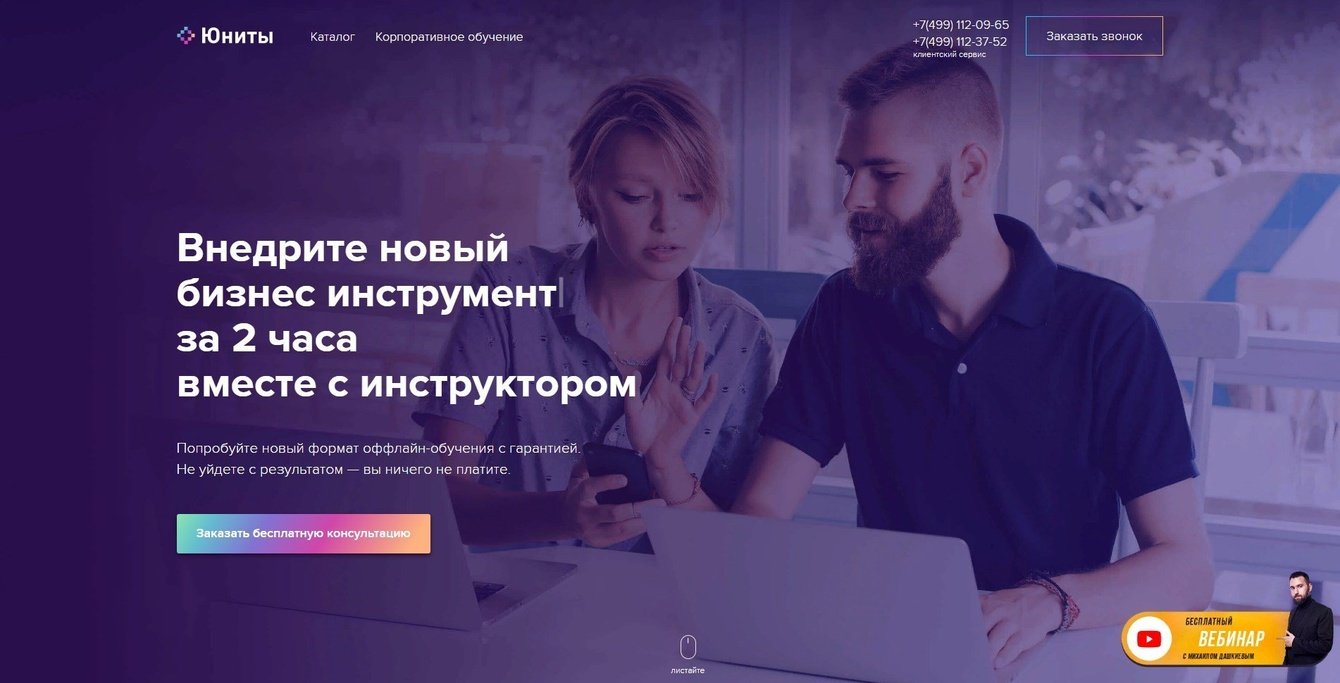 Разработан главный промо-сайт компании, а так же админ-панель конструктор, позволяющая запускать отдельные посадочные страницы для каждого образовательного продукта компании за несколько часов.