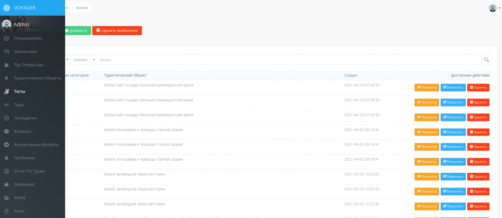 Кроме роли школьника, в приложении реализован личный кабинет туроператора.
