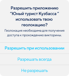 Совместно с Агентством по туризму Кузбасса мы учли, что в районе некоторых достопримечательностей не работает интернет. В квест добавлены локации только с рабочей сетью, где ученик может открыть приложение.