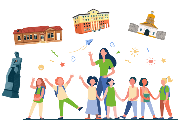 В зависимости от возраста для победы ученикам нужно посетить 8 или 9 обязательных мест из списка. Это культурные и природные музеи, в которых ребятам проводят экскурсии об истории родных мест. Путешествовать ученики могут как с классом в составе общей группы, так и с родителями — мы предусмотрели два типа отметки посещения локаций.