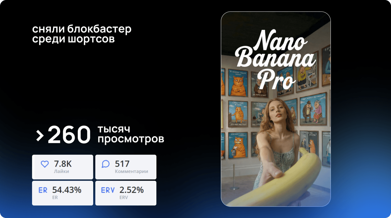 Мы выпустили за год 16 горизонтальных видео и 64 вертикальных и всё это небольшой командой из профессионалов в 3 человека.