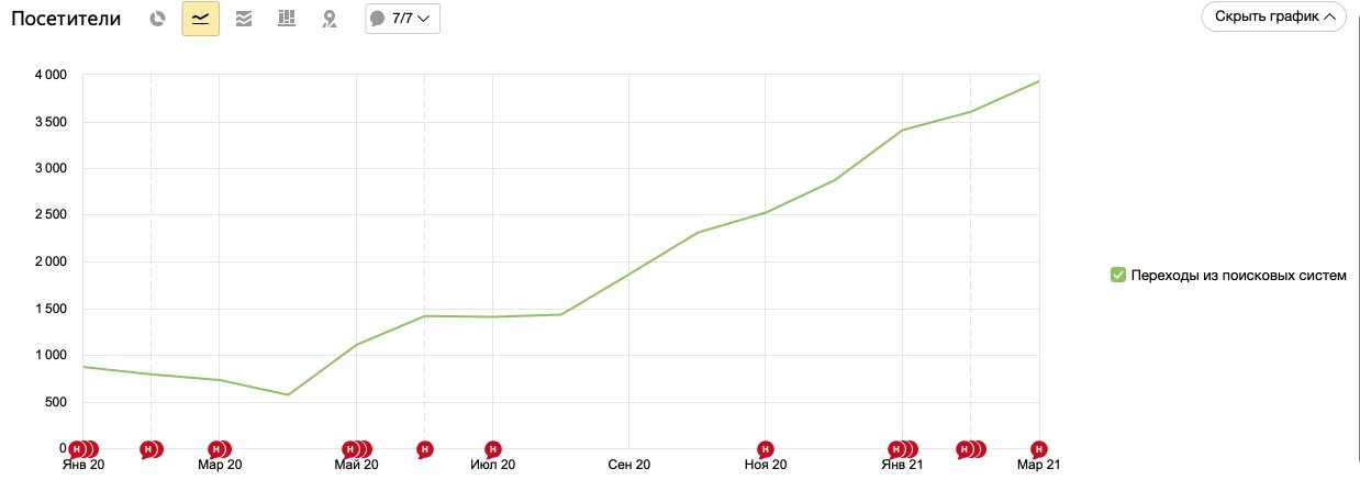 Весь год мы планомерно занимались расширением каталога, созданием посадочных и оптимизацией метатегов.