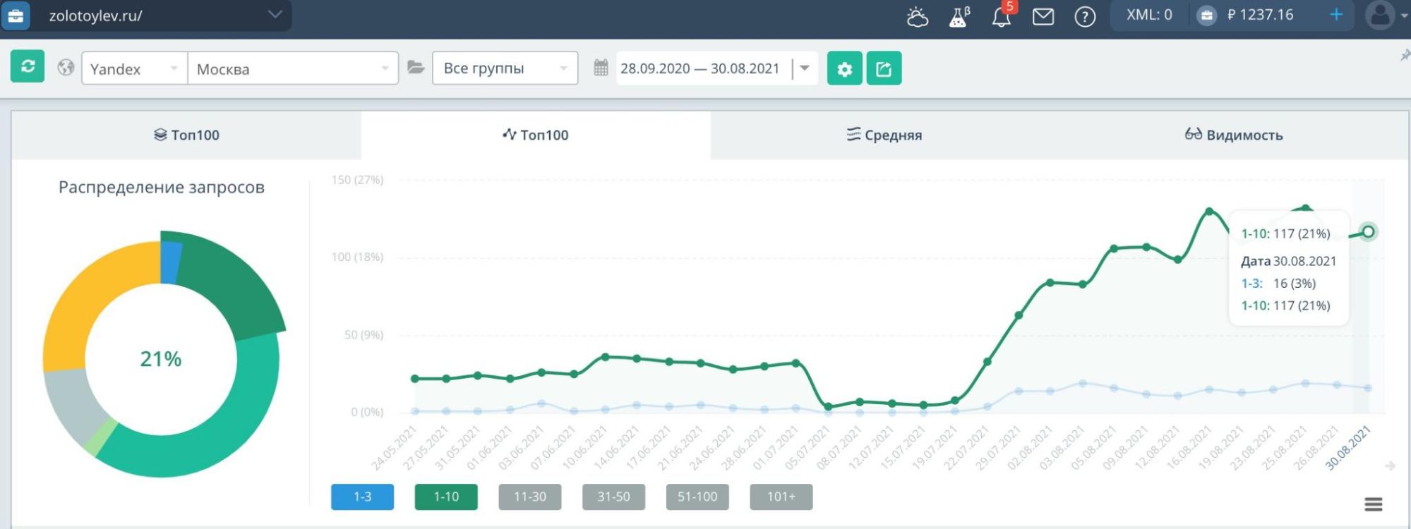 Как только были устранены многочисленные ошибки в технической и контекстной части, стал заметен успешный рост позиций.