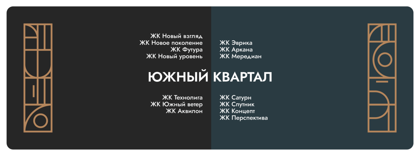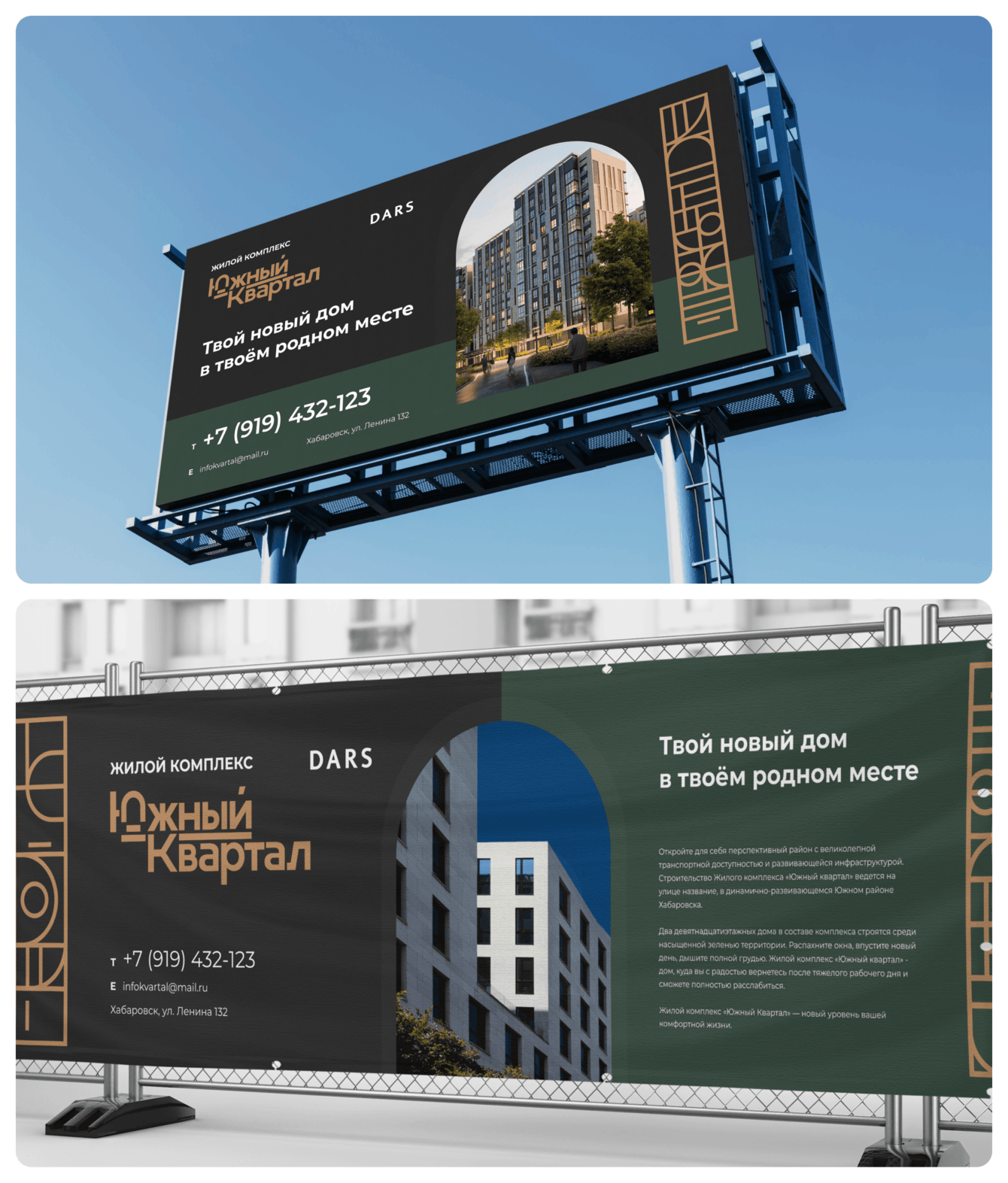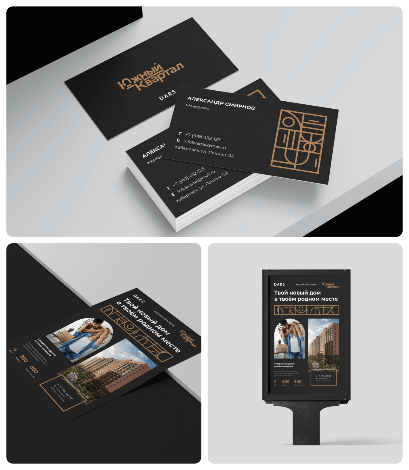 DARS Development — это крупный федеральный застройщик. Клиент поручил нам создать брендбук и нейминг, которые явно выделили бы новый ЖК в Хабаровске. ЖК «Южный квартал» строится для людей, которые провели детство в Южном микрорайоне, выросли, и теперь готовы купить хорошую квартиру в том месте, которое они знают. Можно сказать, это возвращение повзрослевшего героя или героини домой. Поэтому, нам нужно было отразить в брендбуке уют, комфорт, престижность и тёплую ностальгию. Нам предстояло не просто создать хороший визуал, но сделать нечто большее, так как в планах у застройщика создать жилой комплекс, который должен стать доминантой в районе.