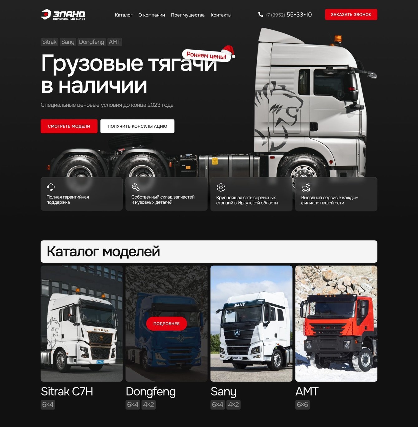 У компании к концу 2023 года осталось определённое количество нераспроданных моделей тягачей. Заказчик хотел распродать технику, оставшуюся в наличии. Было решено запустить небольшой лендинг с рекламой на него. До нового года оставалось меньше месяца, поэтому действовать нужно было быстро.