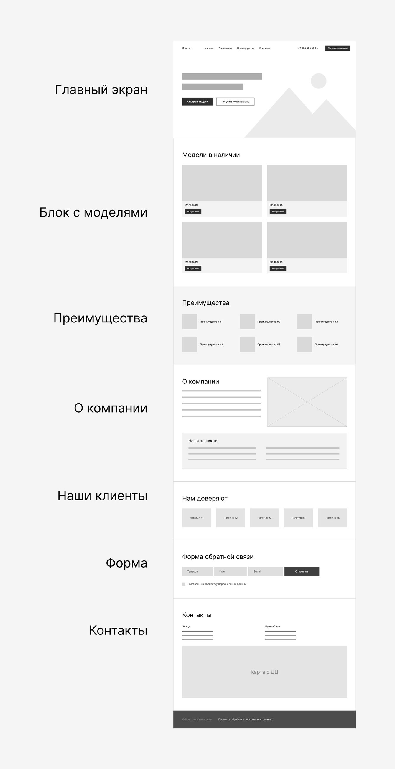 После сбора вводных данных мы быстро набросали примерное содержание будущего лендинга.