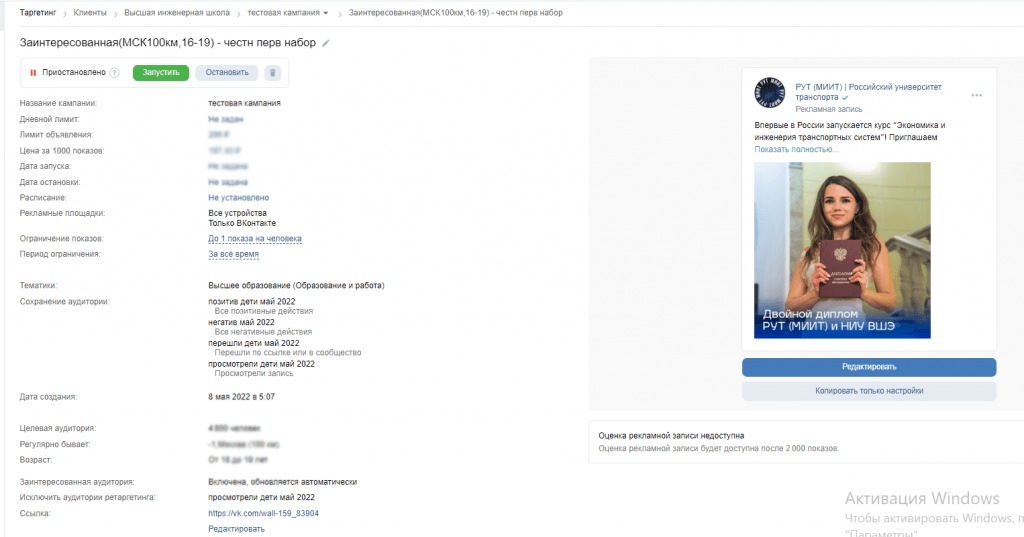 В основную РК перенесли 14 объявлений из тестовой кампании, а еще появились посты про день открытых дверей, которые анонсировали за неделю до события.