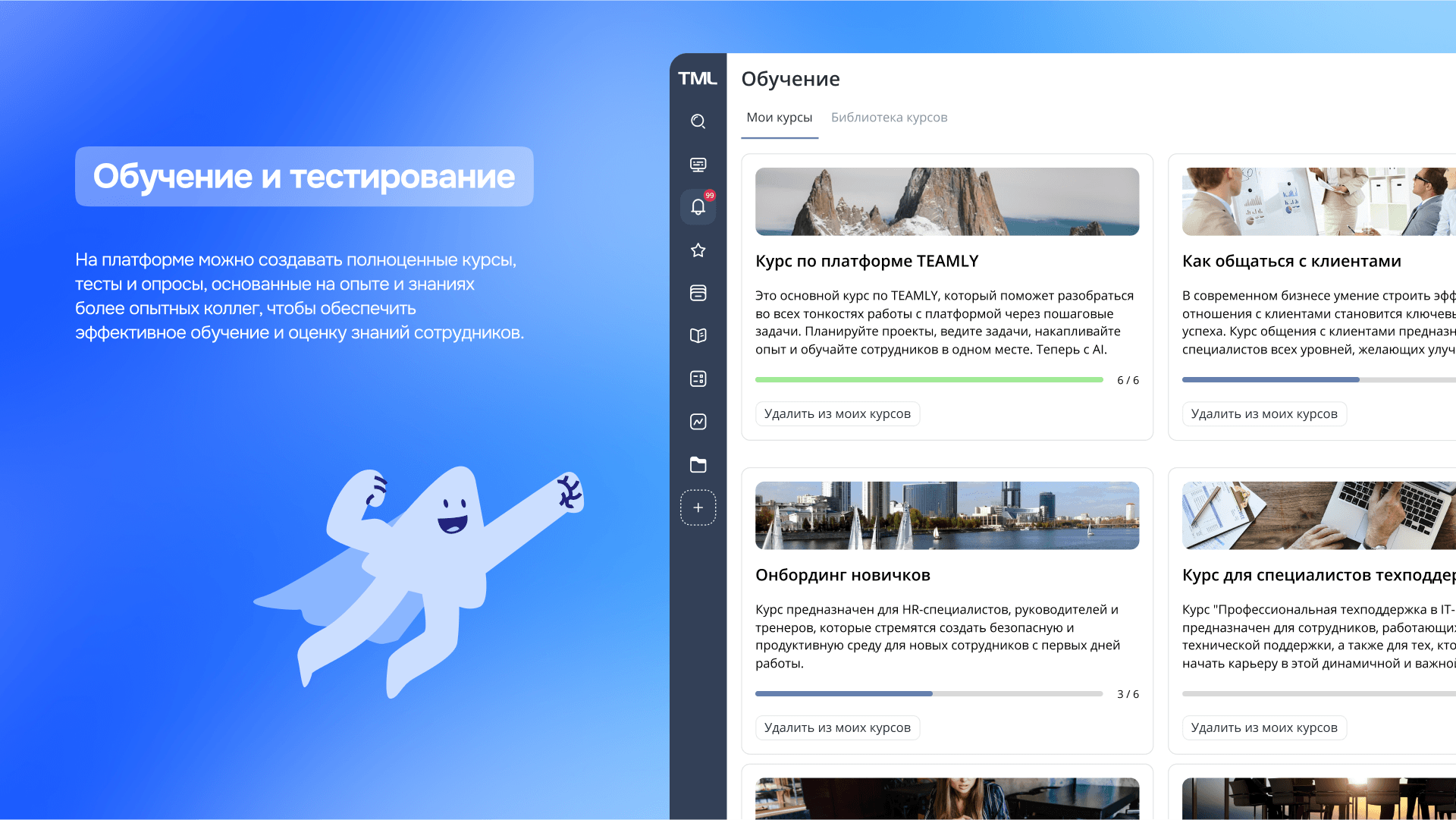 - Создание тестов и опросов для эффективной оценки знаний сотрудников.