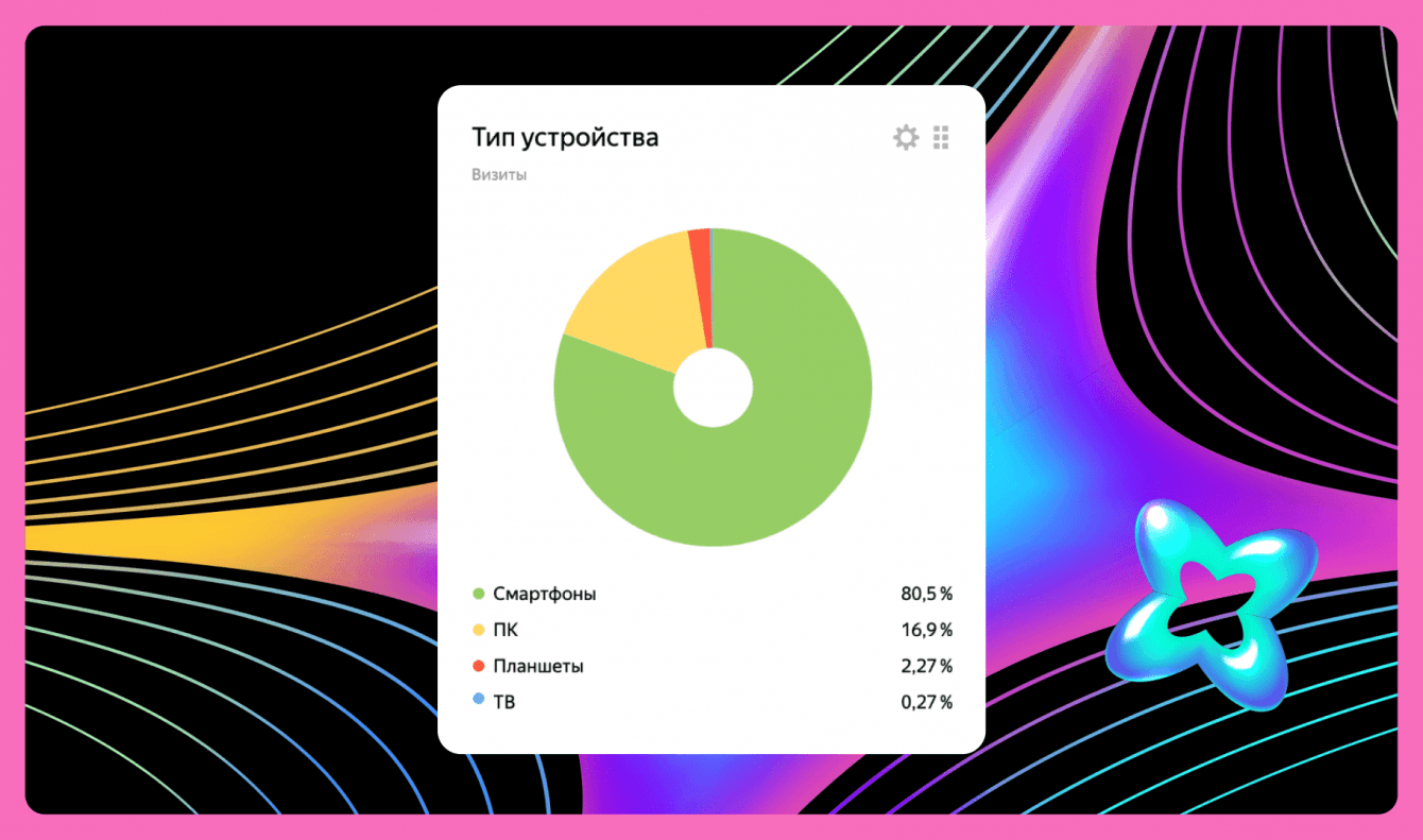 80,5 % пользователей посмотрело сайт с телефона. Это в очередной раз доказывает, что адаптив — очень важная вещь. Большинство посетителей увидели рекламу со смартфона. Когда сайт на адаптиве смотрится хуже и при этом постоянно лагает, бизнес теряет потенциальных лидов.