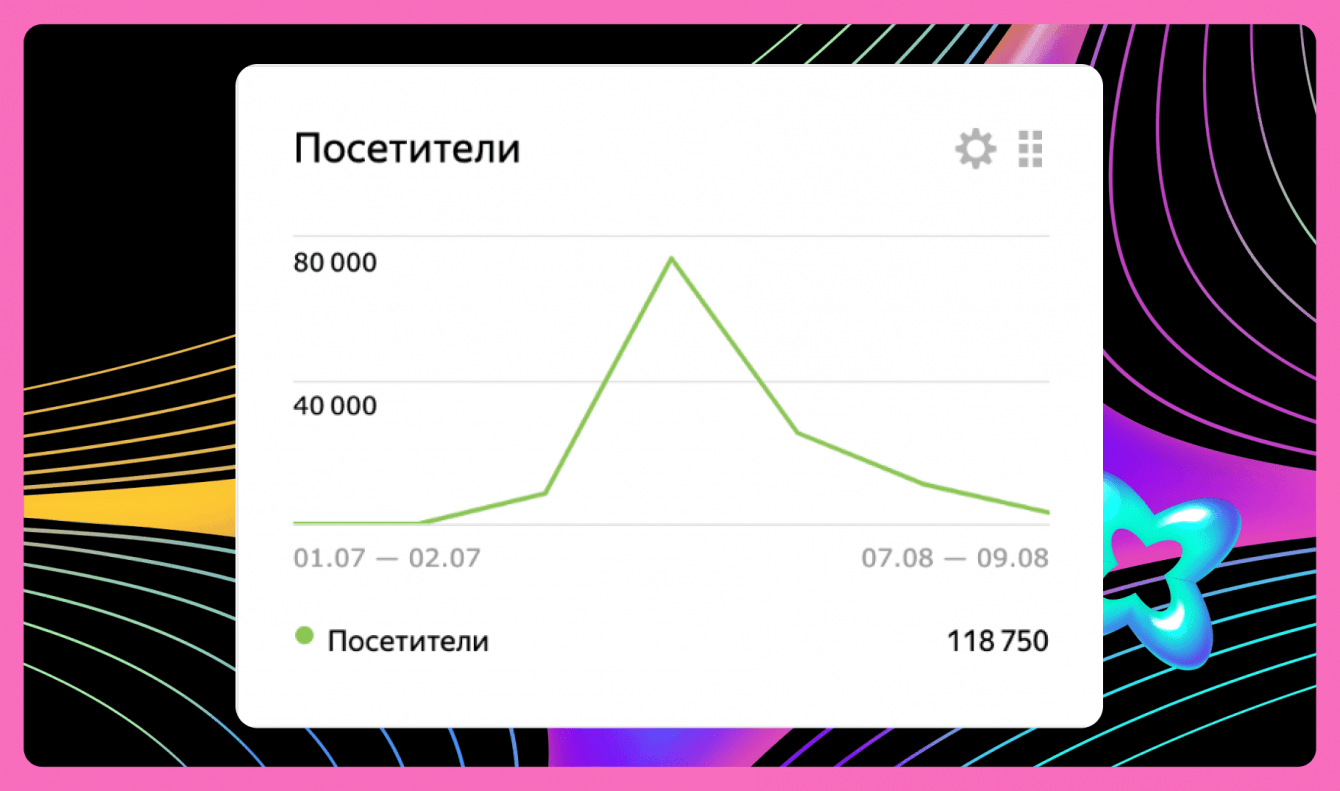 Сайт запустили в начале июля 2023 года. Через полтора месяца посмотрели метрики, а на лендинге побывало уже 118 750 человек.