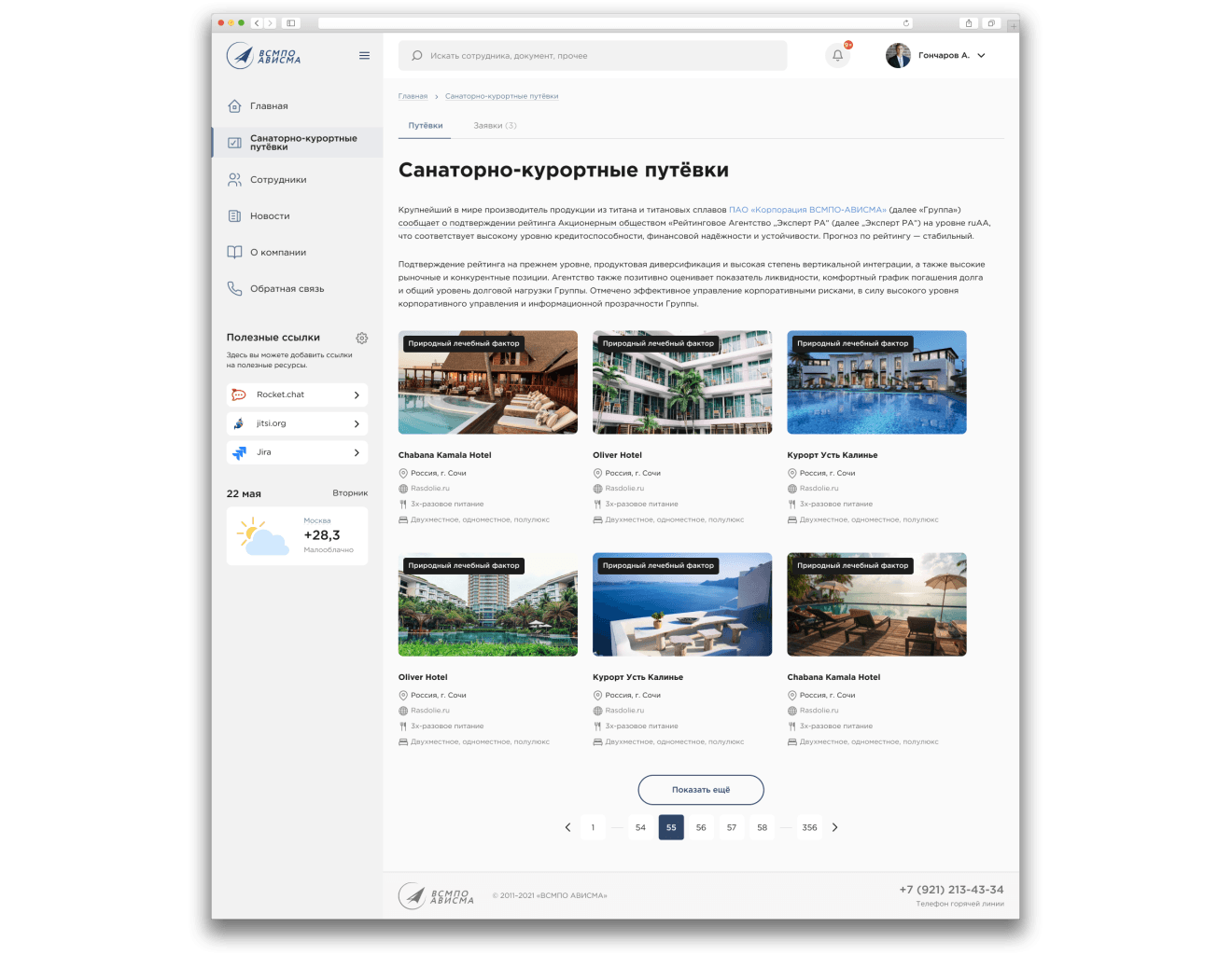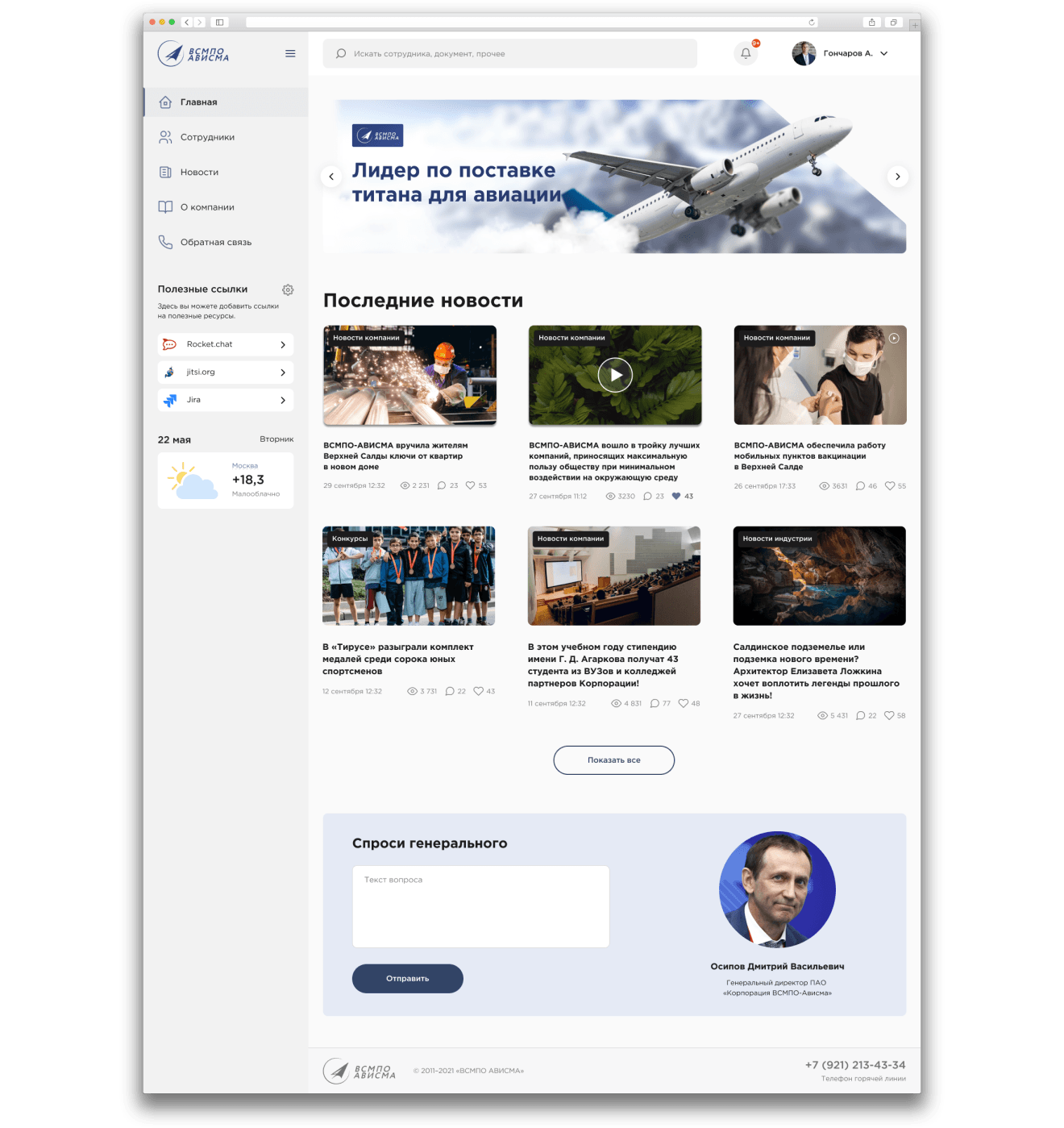 Перед командой Эм Си Арт мы поставили задачу создать не просто корпоративный портал Корпорации, а единое доступное пространство, которое объединяет в себе социальные и рабочие функции. Мы получили именно тот результат, на который рассчитывали, — теперь у нас есть функциональный современный портал, которым удобно пользоваться с любых устройств — как с рабочего компьютера, так и с мобильного телефона. Развитие и поддержку корпоративного портала мы также доверили команде Эм Си Арт.